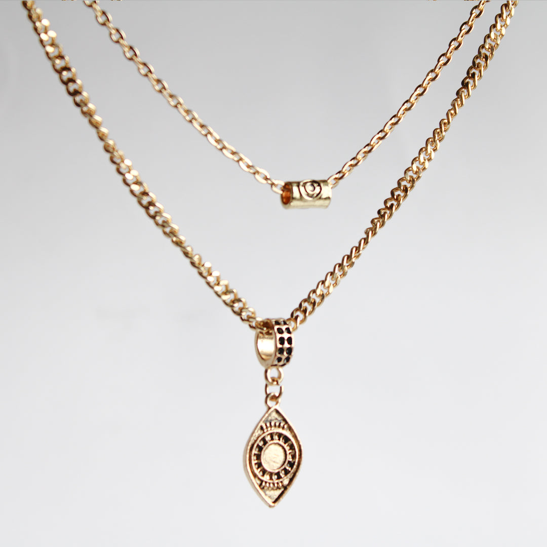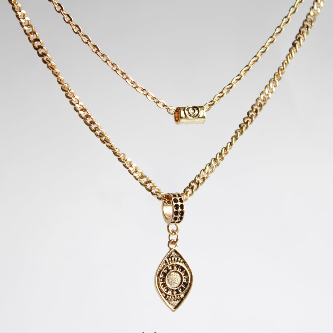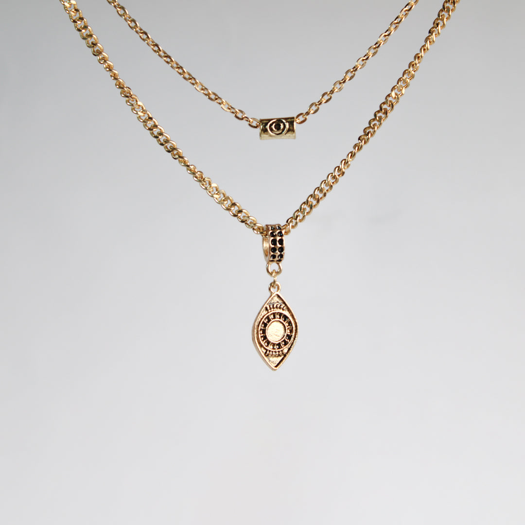 Discover new levels of spiritual awareness with our Third Eye Necklace. Featuring a double layer of delicate, golden chains, this necklace is adorned with a stunning third eye charm. Enhance your intuition and elevate your style with this mystical jewelry piece.