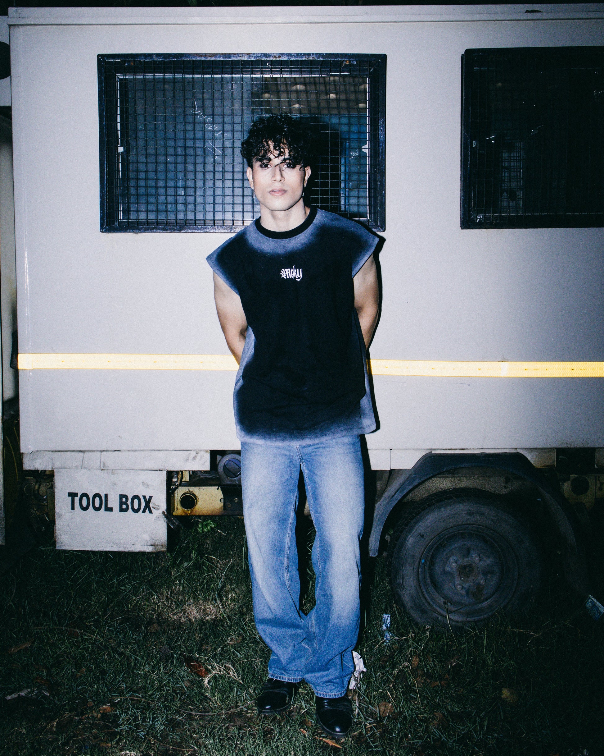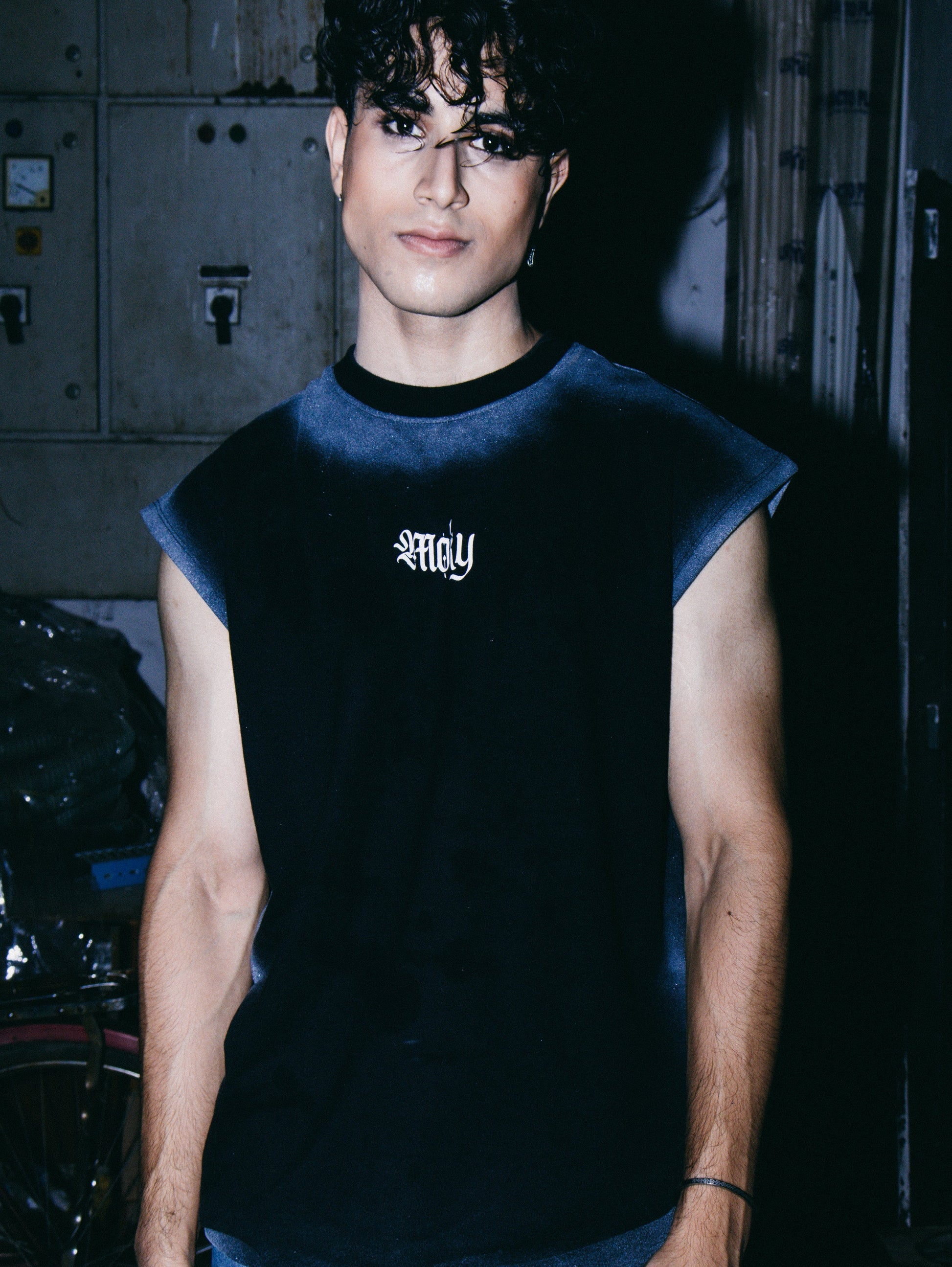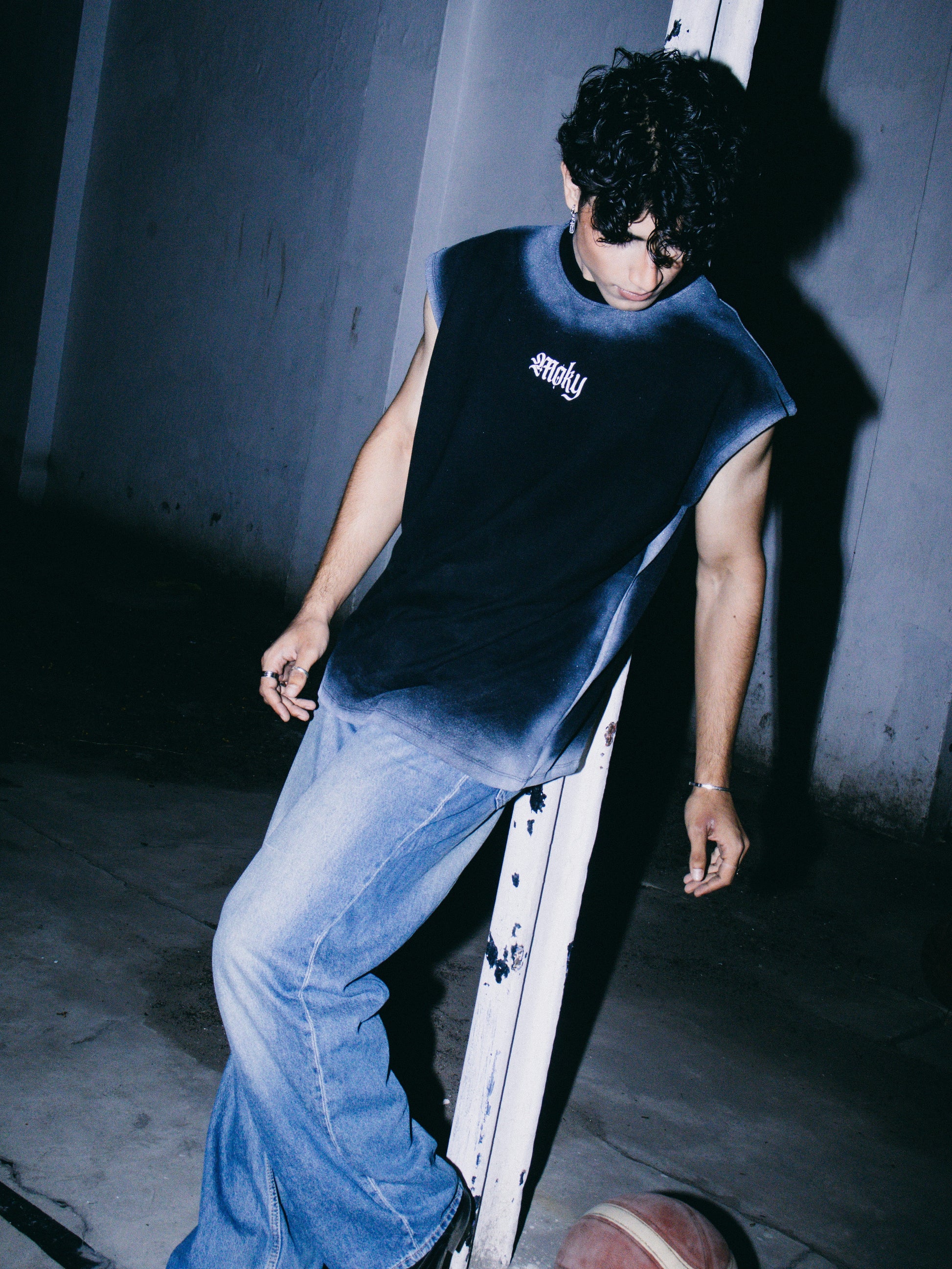 The standout feature is the hand-applied spray dye effect along the shoulders and borders, creating a gradient, raw aesthetic that blends grunge with streetwear minimalism. Each piece is uniquely sprayed, ensuring no two tanks are exactly alike. The armholes are left with a raw-cut finish, enhancing the edgy, unfinished appeal while keeping the look relaxed and unrestricted.