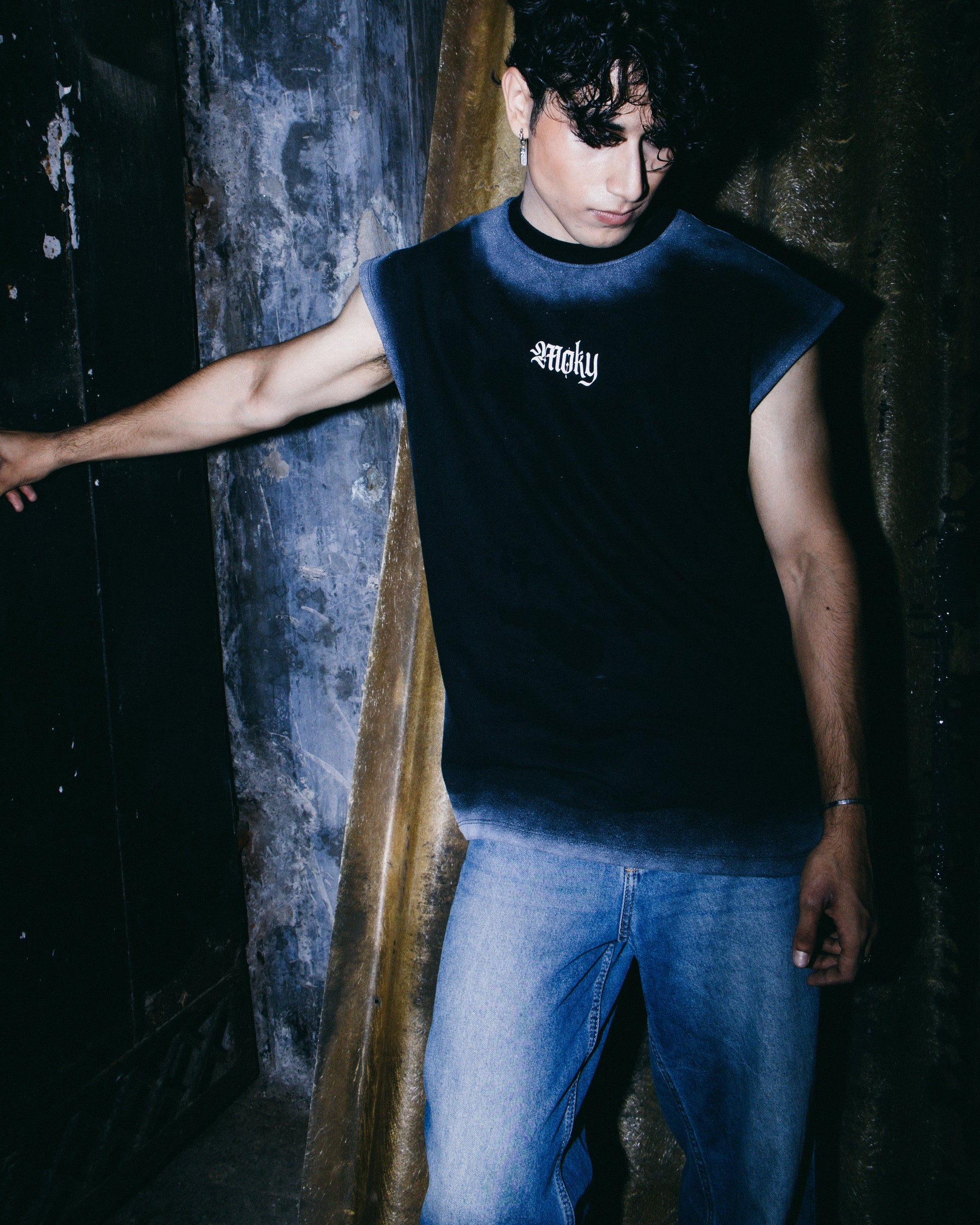 Logo: "Moky" gothic print on chest