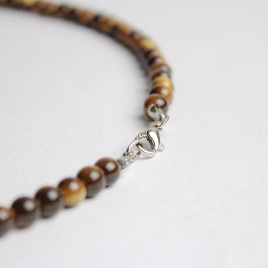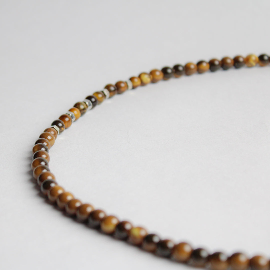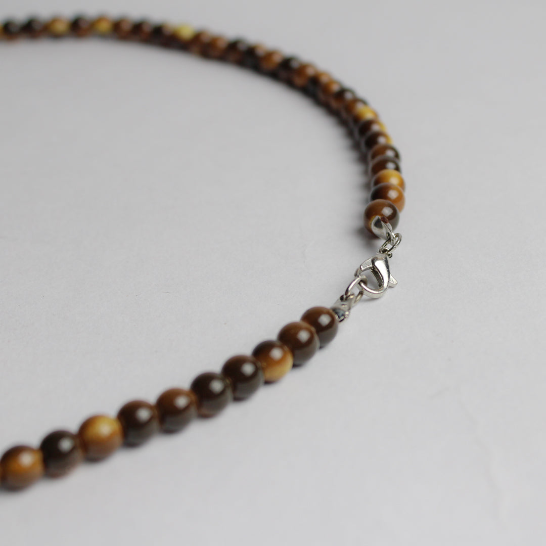 This tiger eye necklace is designed for men, featuring the unique and desirable properties of tiger eye, a semi-precious stone known for its protective and grounding qualities. Add style and confidence to your wardrobe with this expertly crafted necklace.