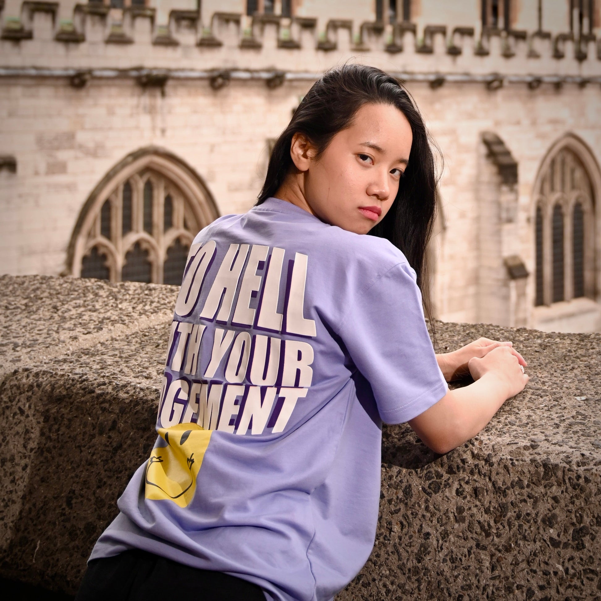 To hell with your judgment oversized T-shirt made with bio-washed cotton.