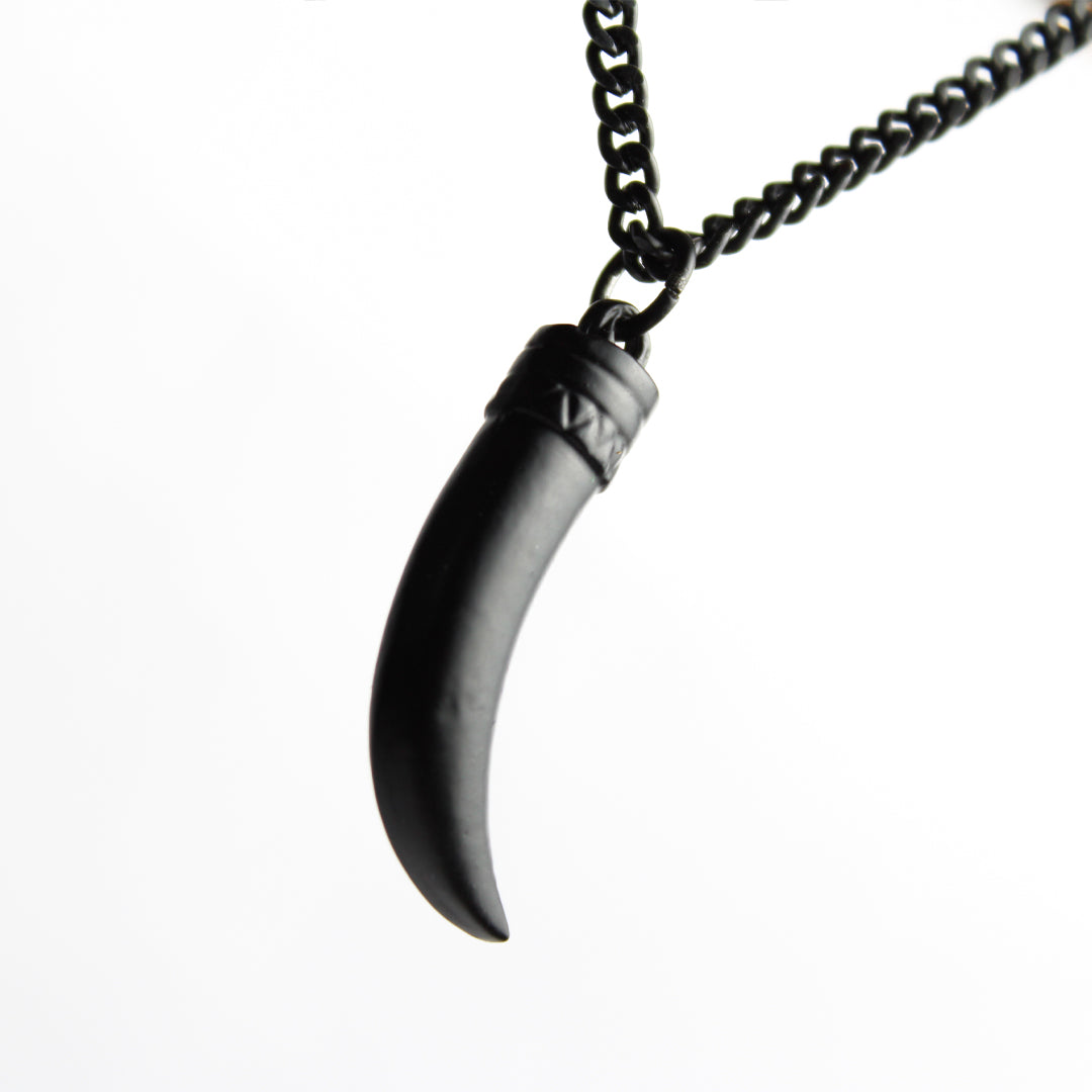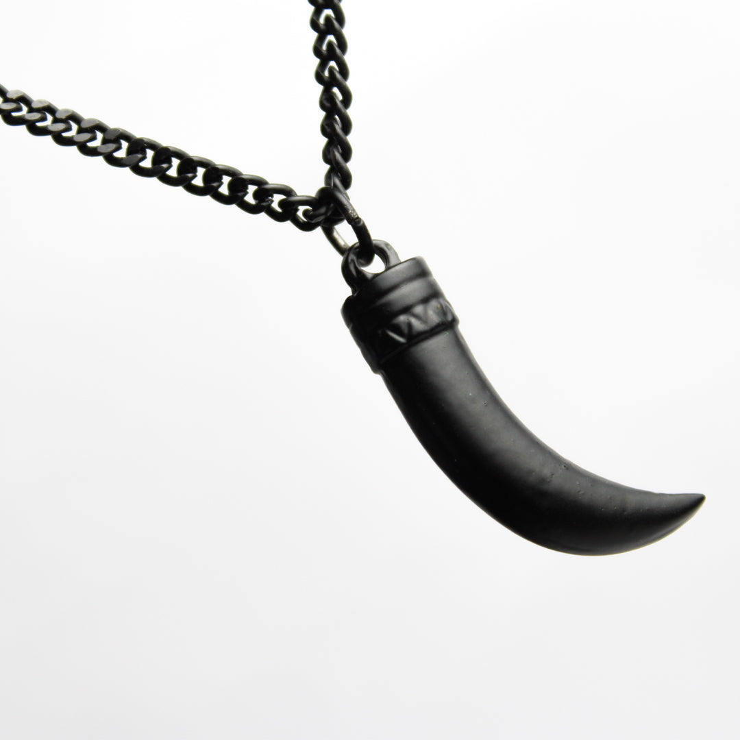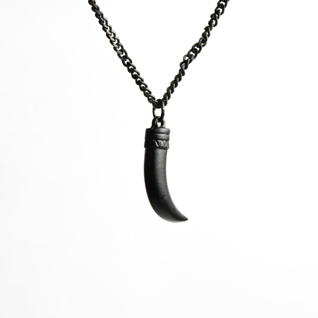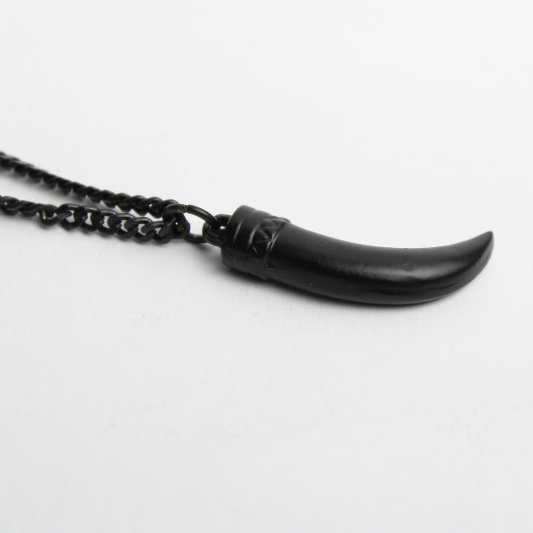 Expertly crafted from high-quality materials, this black unisex tusk necklace is a versatile and stylish addition to any wardrobe. The unique design showcases a bold yet elegant look, making it perfect for any occasion. Elevate your style with this must-have accessory.