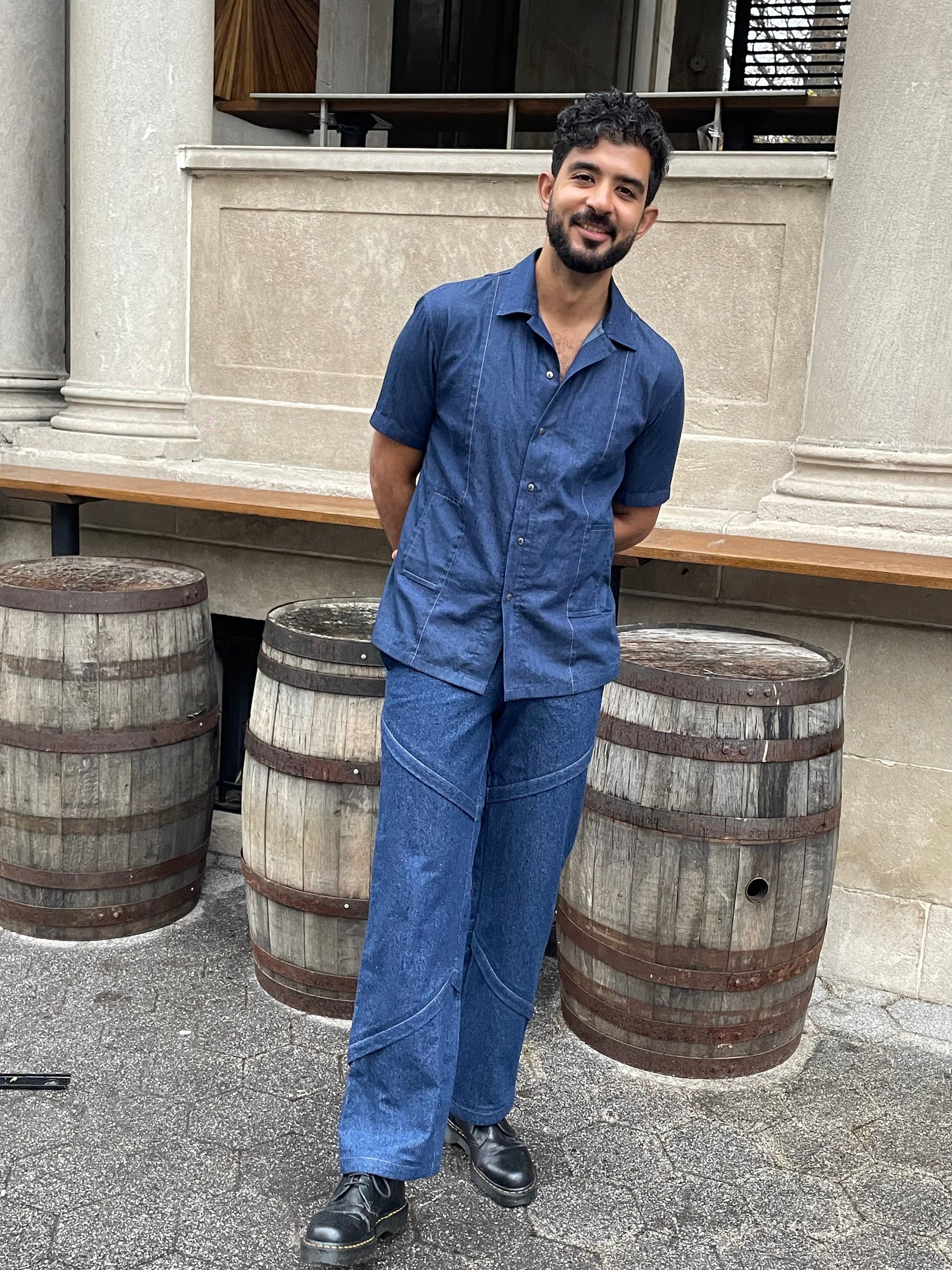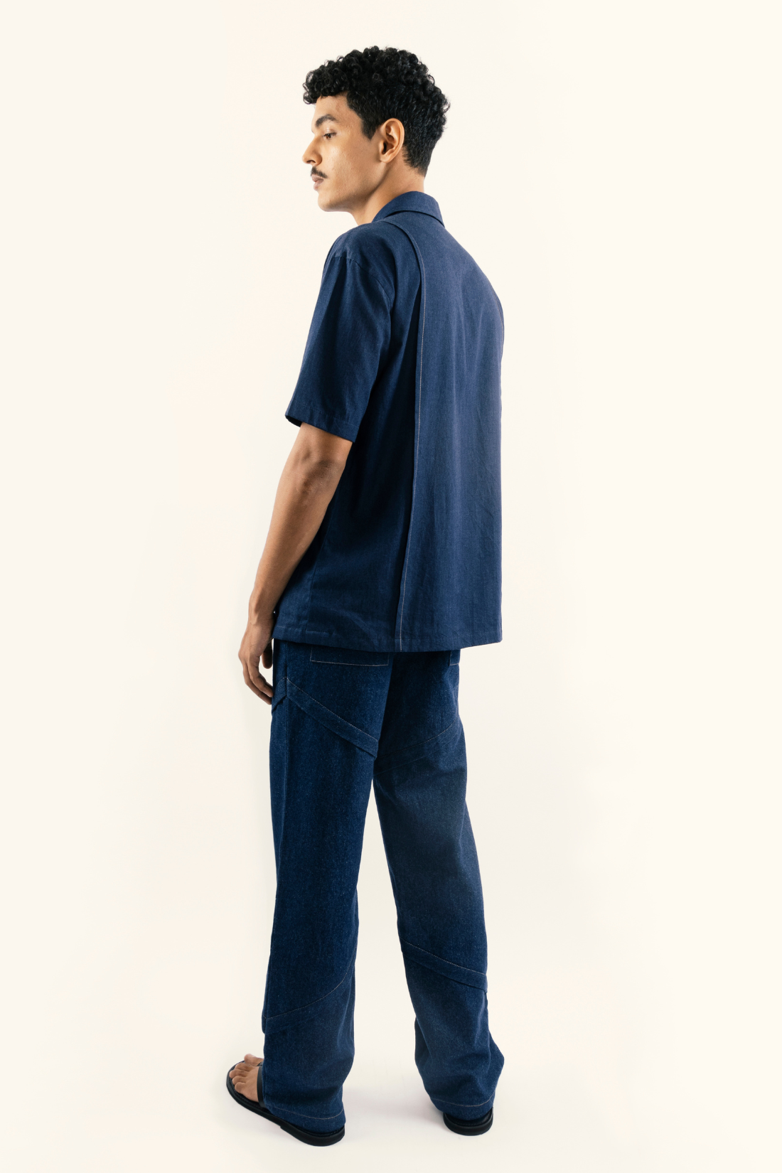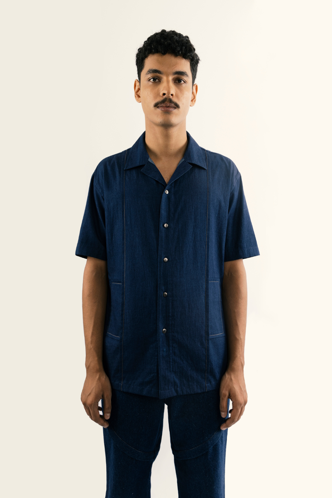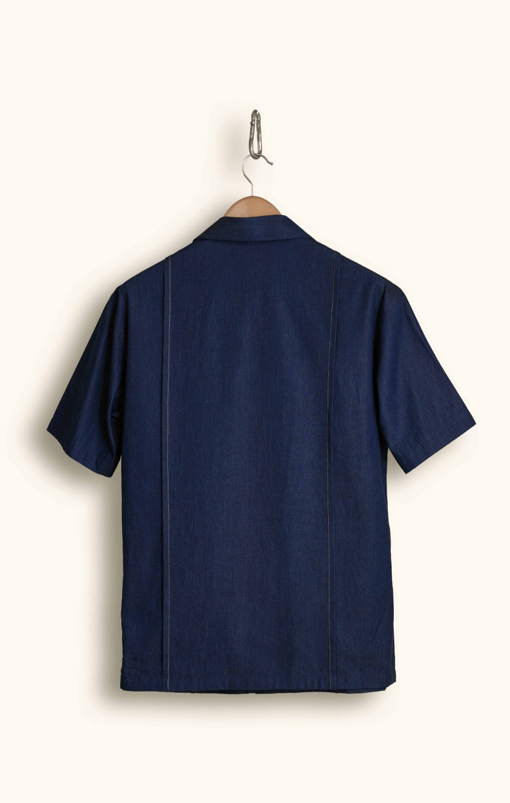open collar style - wide placket - front and back side pleat - contrast top stitch detail - half sleeve - side pockets - front button down closure - regular fit