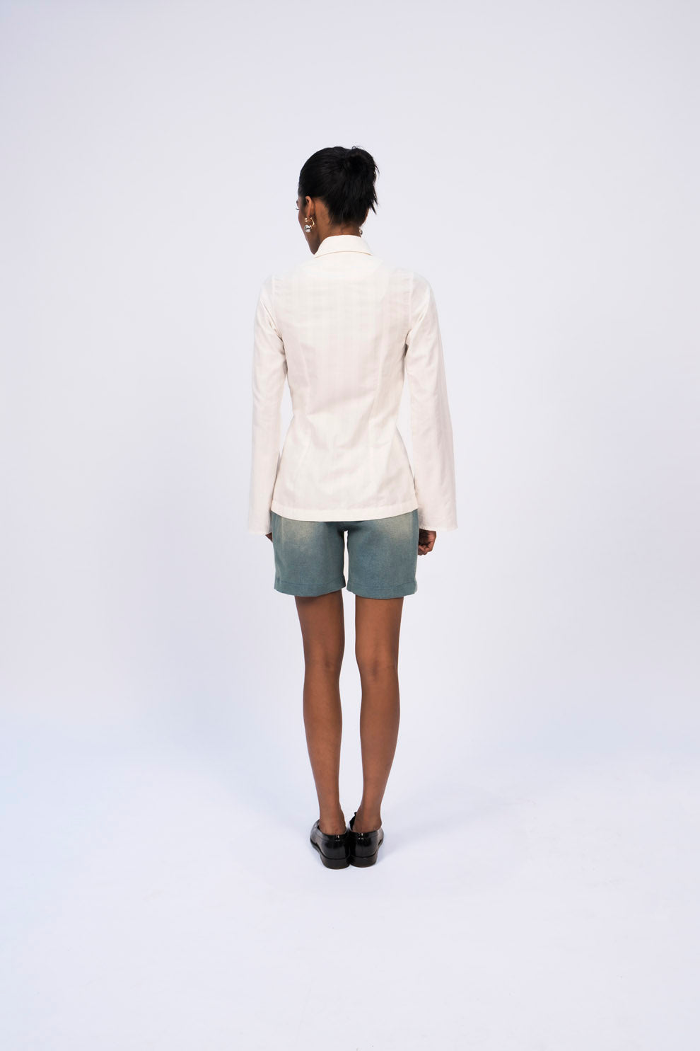 regular collar - front button closure - full sleeves - no cuff - front and back dart - slim fit