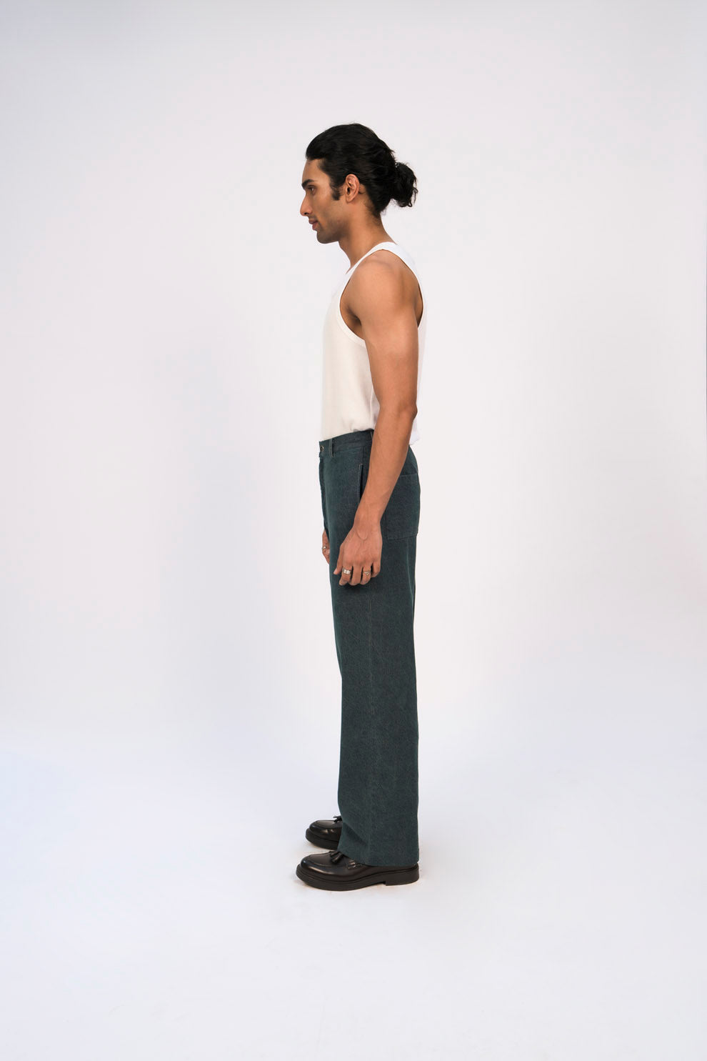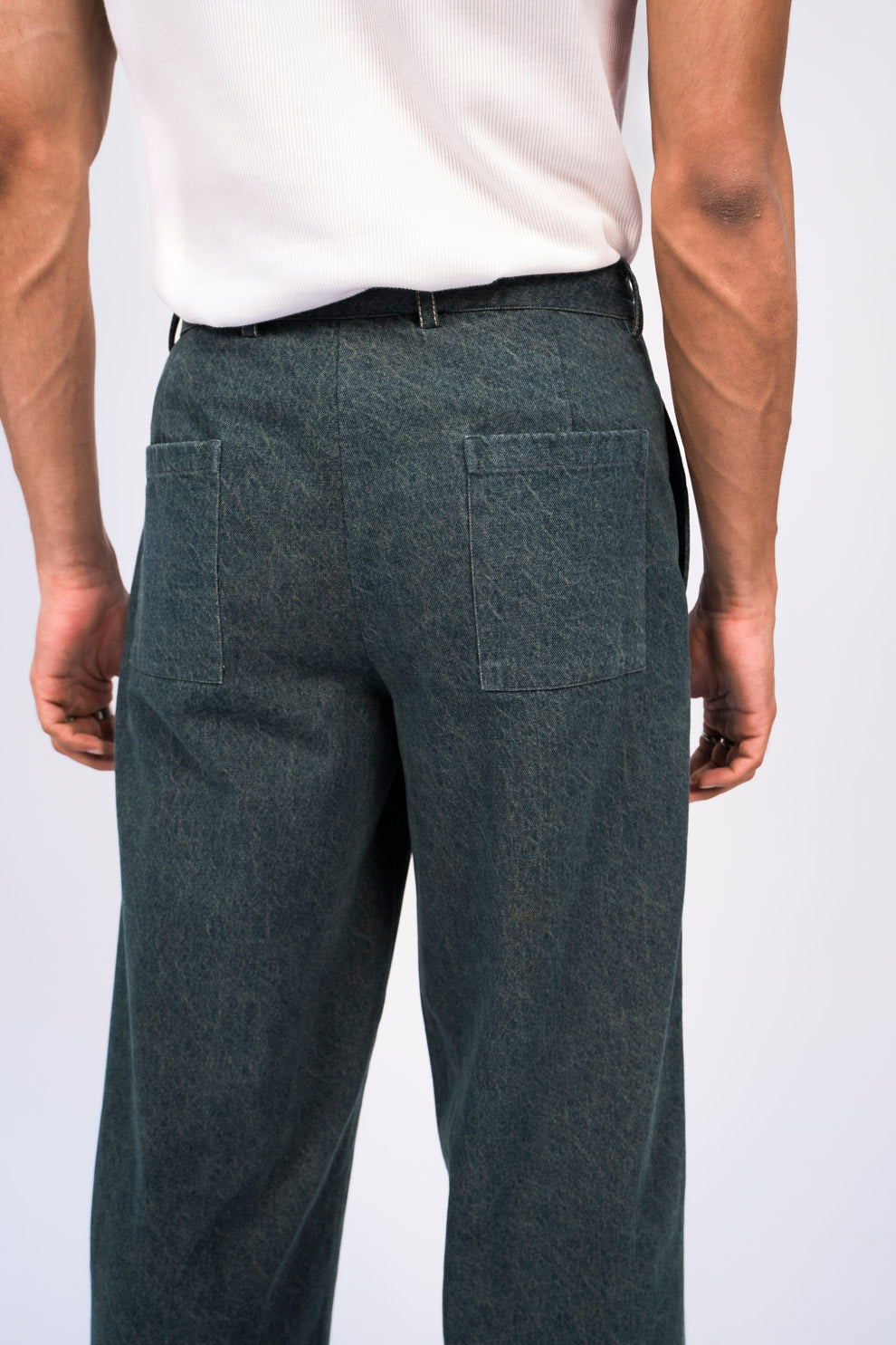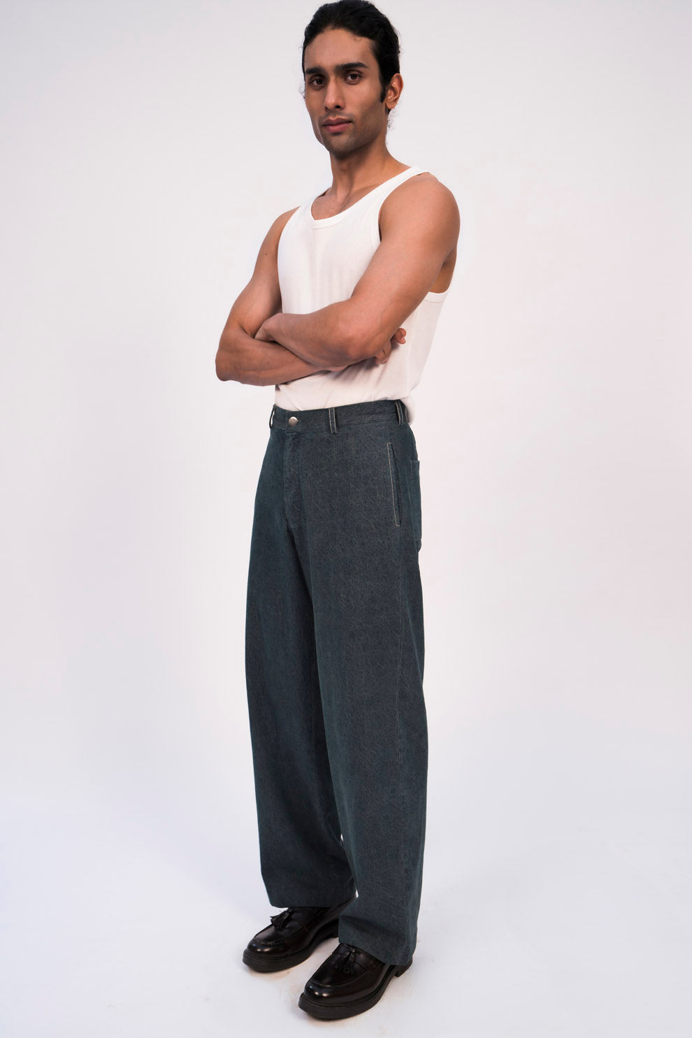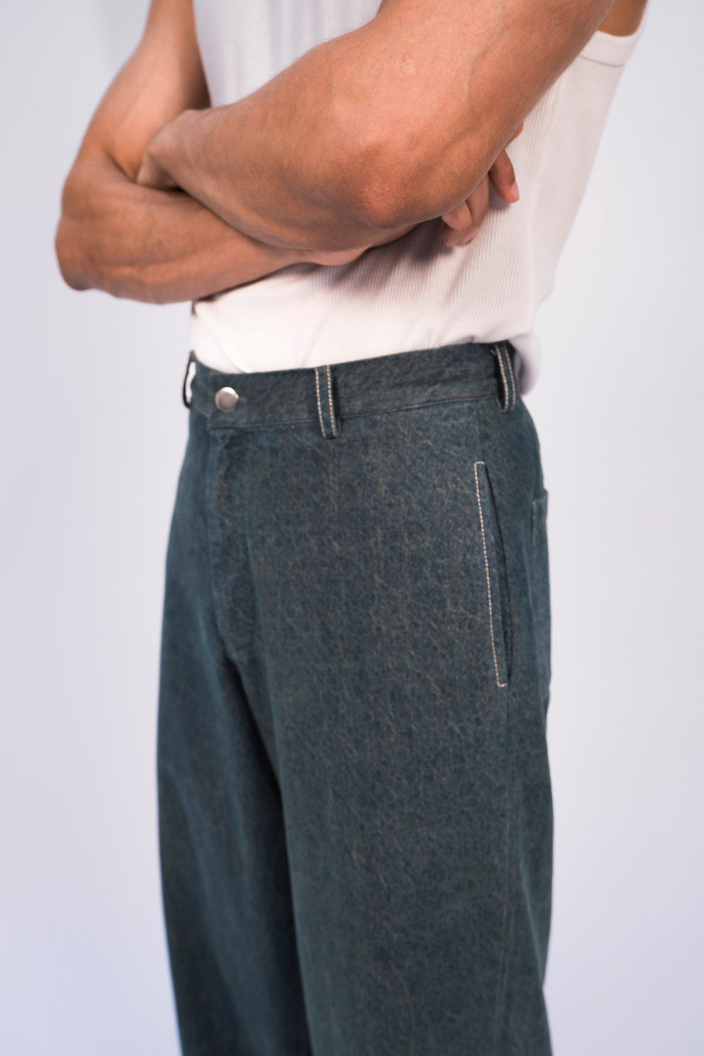 regular waist - front fly closure - front round pockets - back patch pockets - straight fit