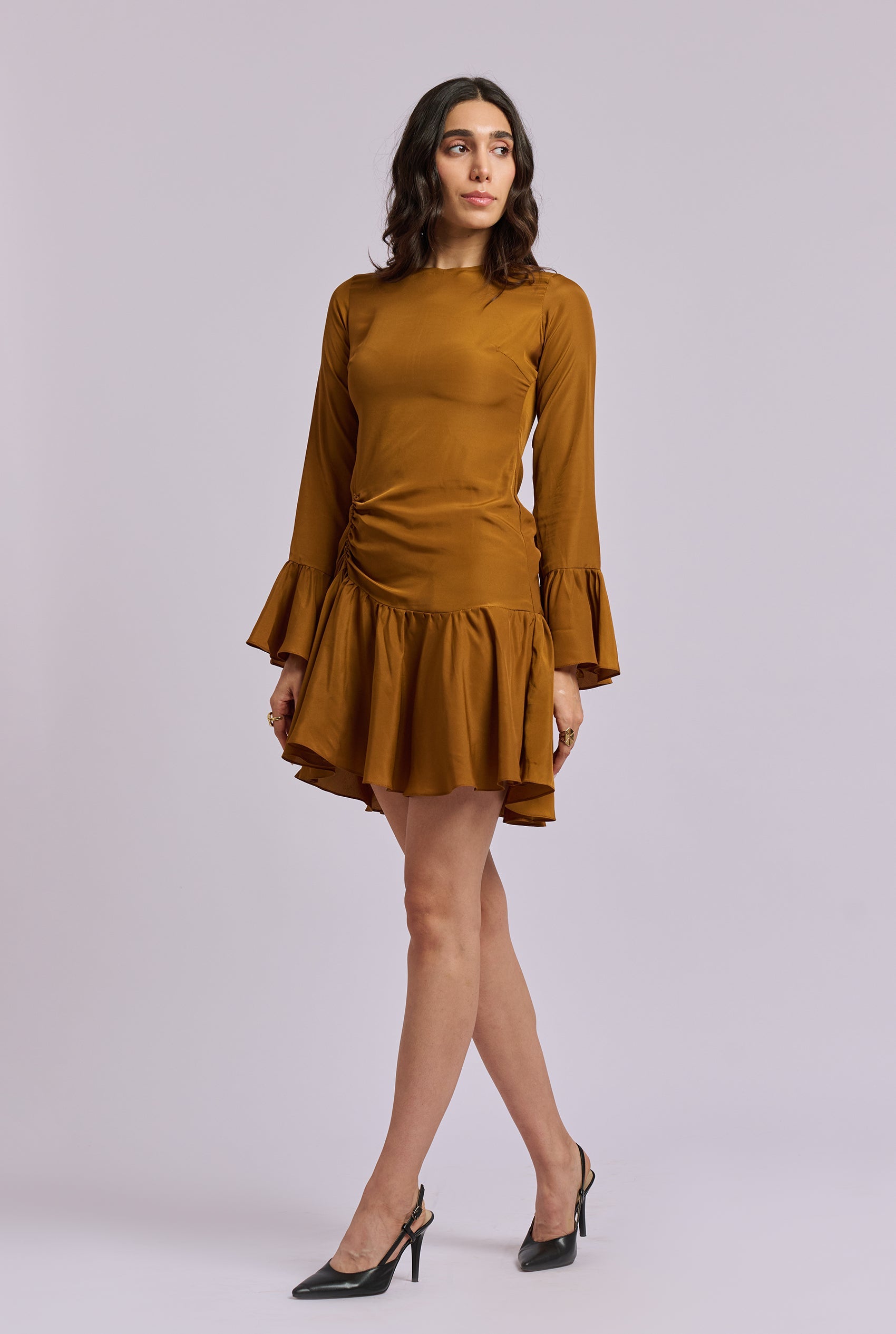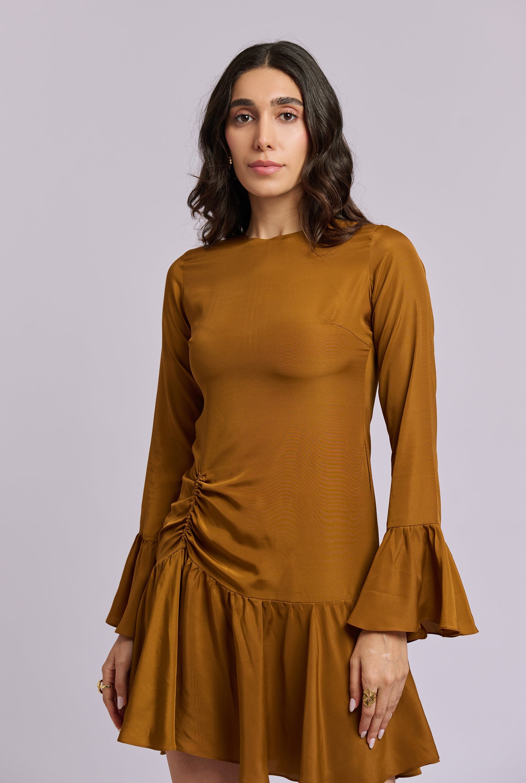 Vivian Golden Brown Full Sleeve Fitted dress with a Slight Flare