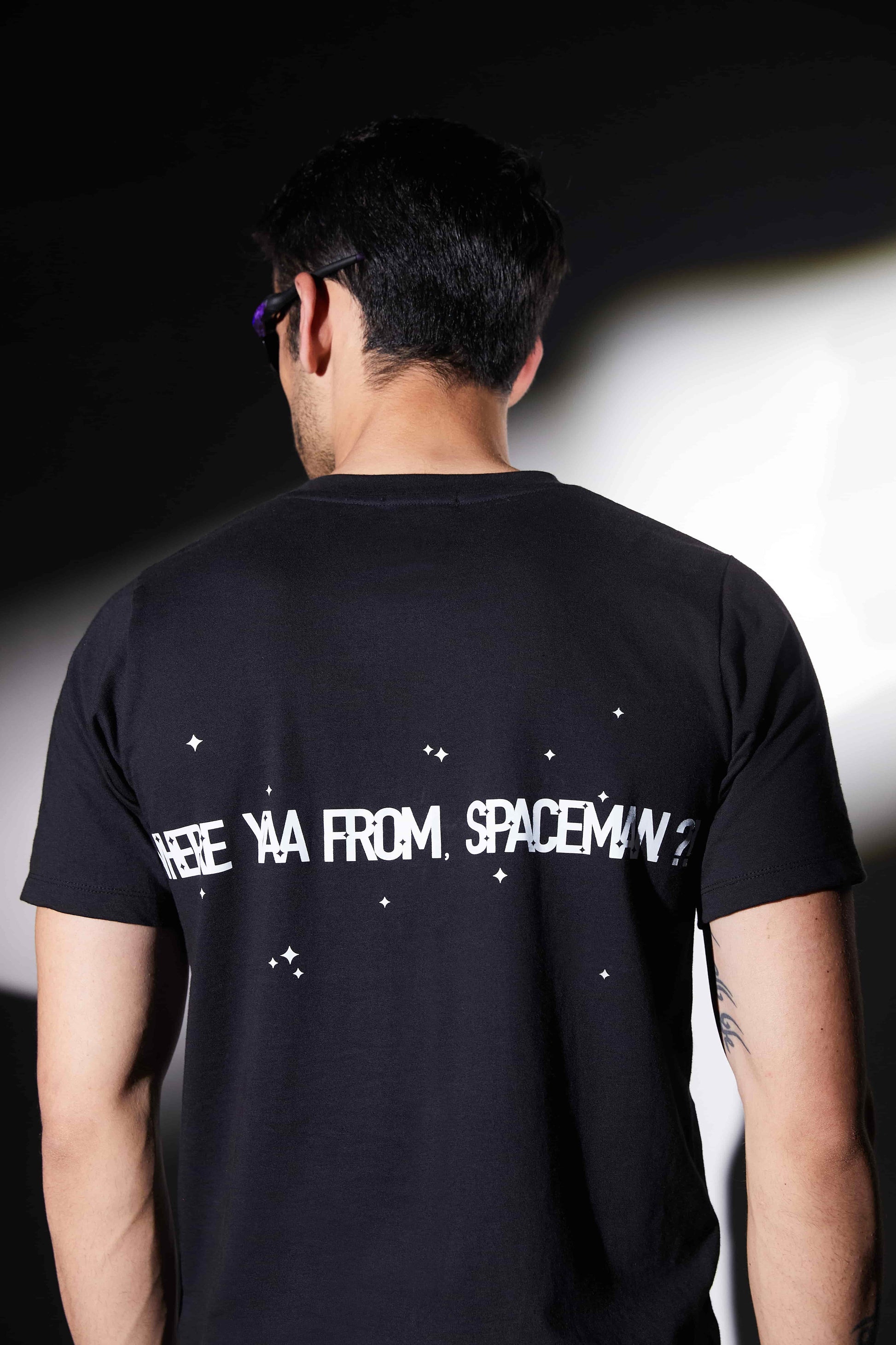 Round Neck short sleeve Tee with "whale galaxy print" along with a typography at the back "where are yaa spacemen". This collection is in collaboration with Muskaan. An NGO for specially abled. 15% of our net profits will be donated for their welfare.