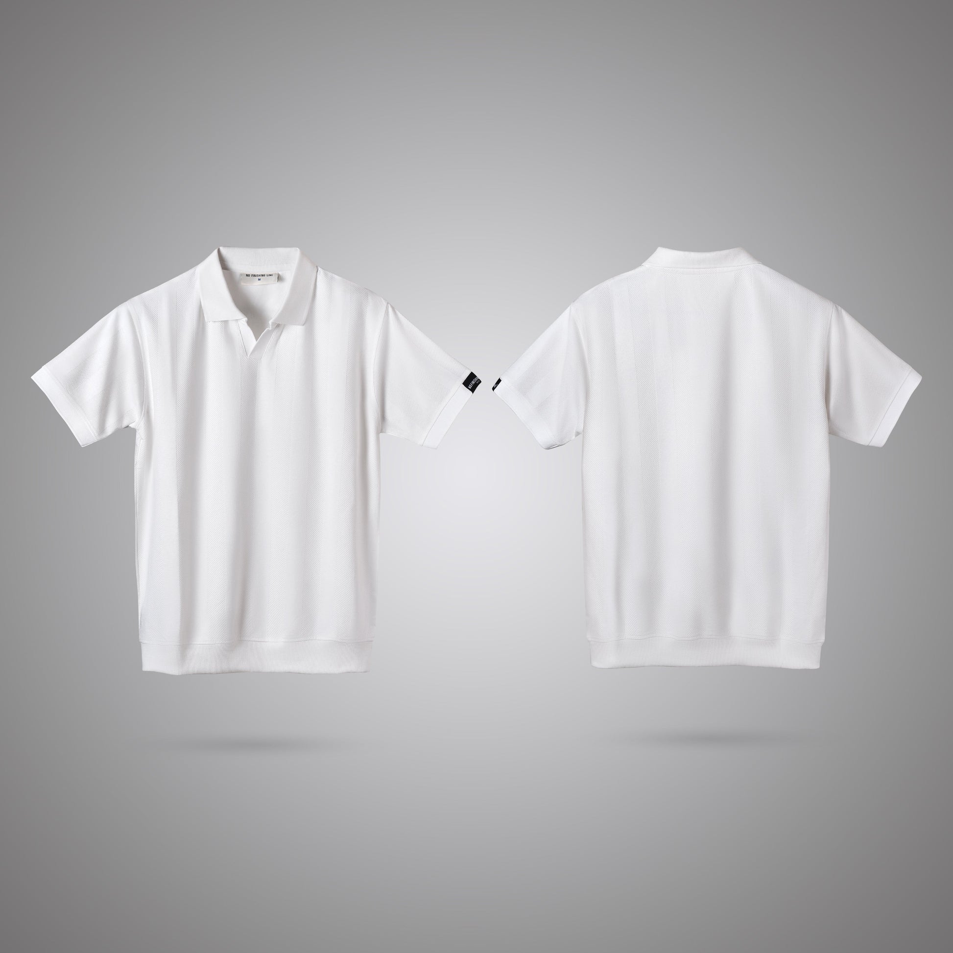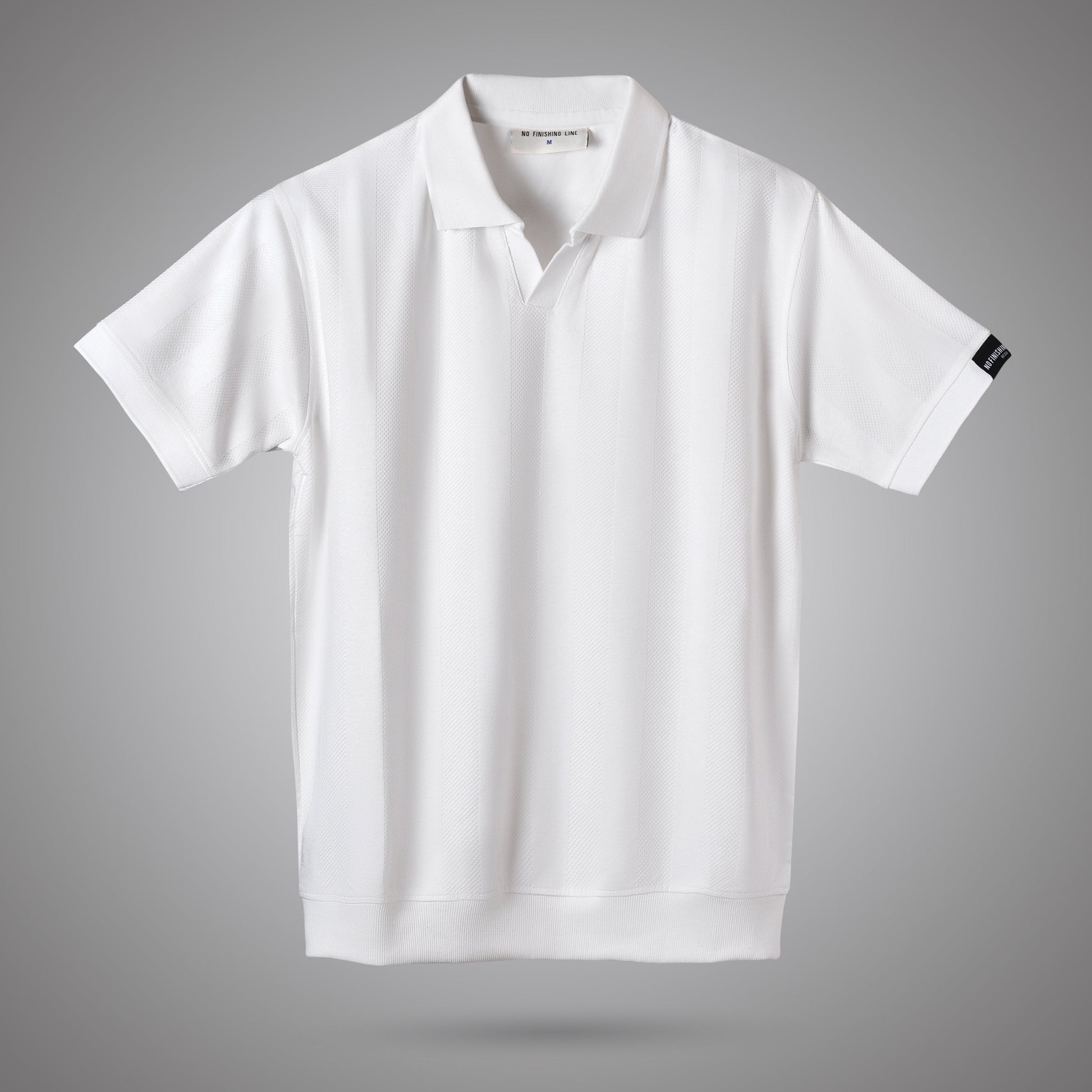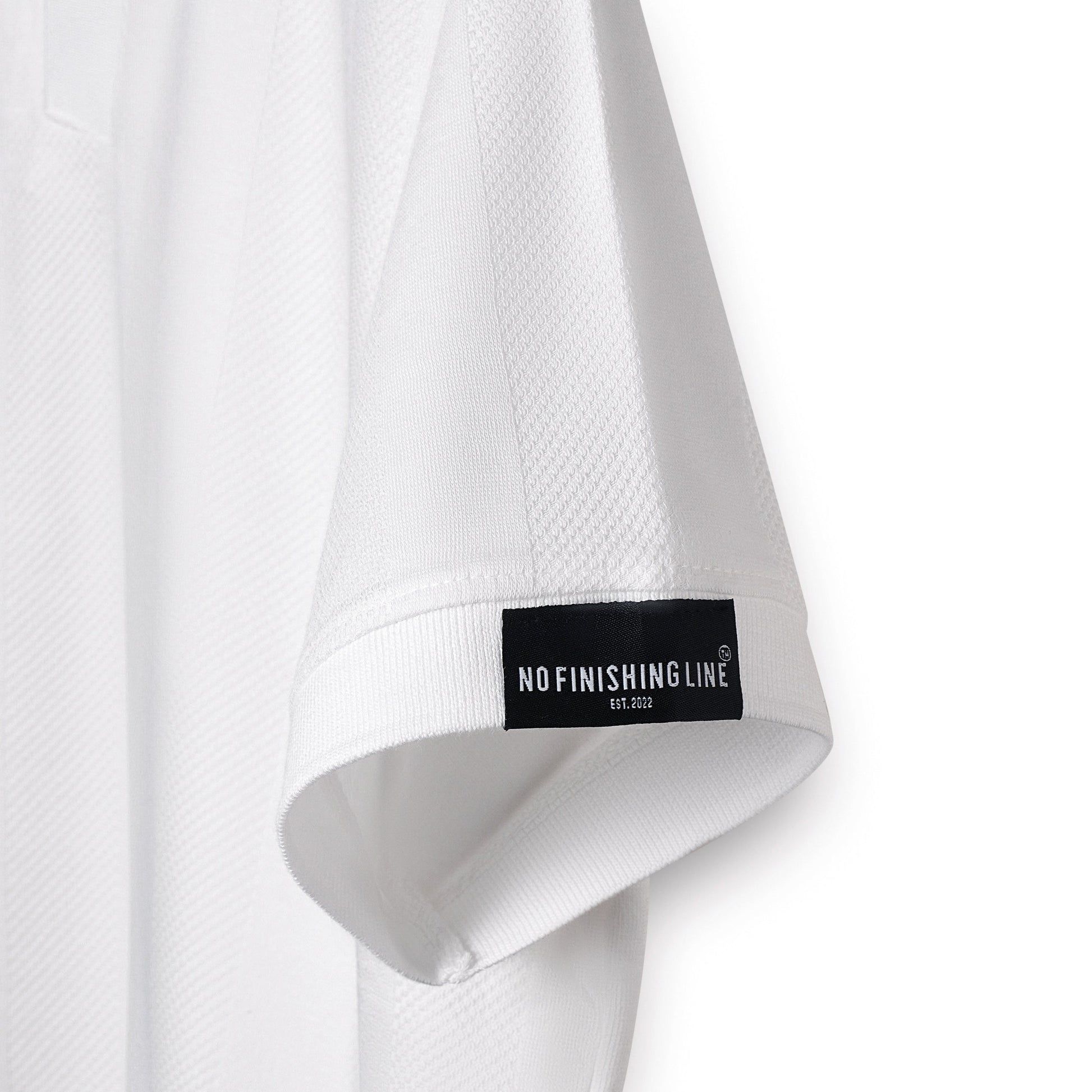 White jacquard polo t-shirt that gives a retro look with a tapered hem and a slim fit.
