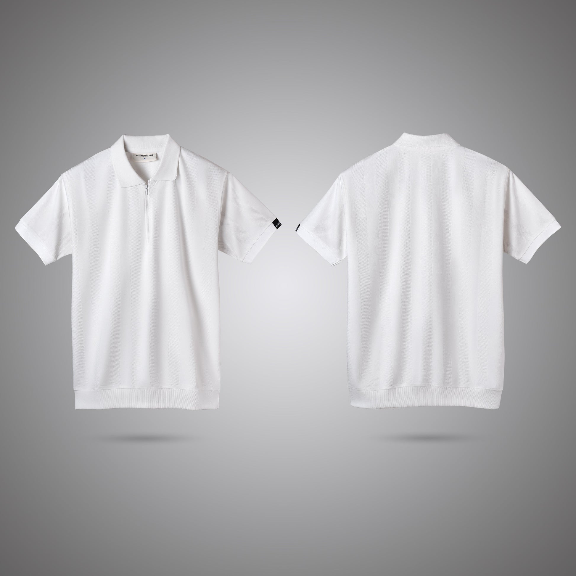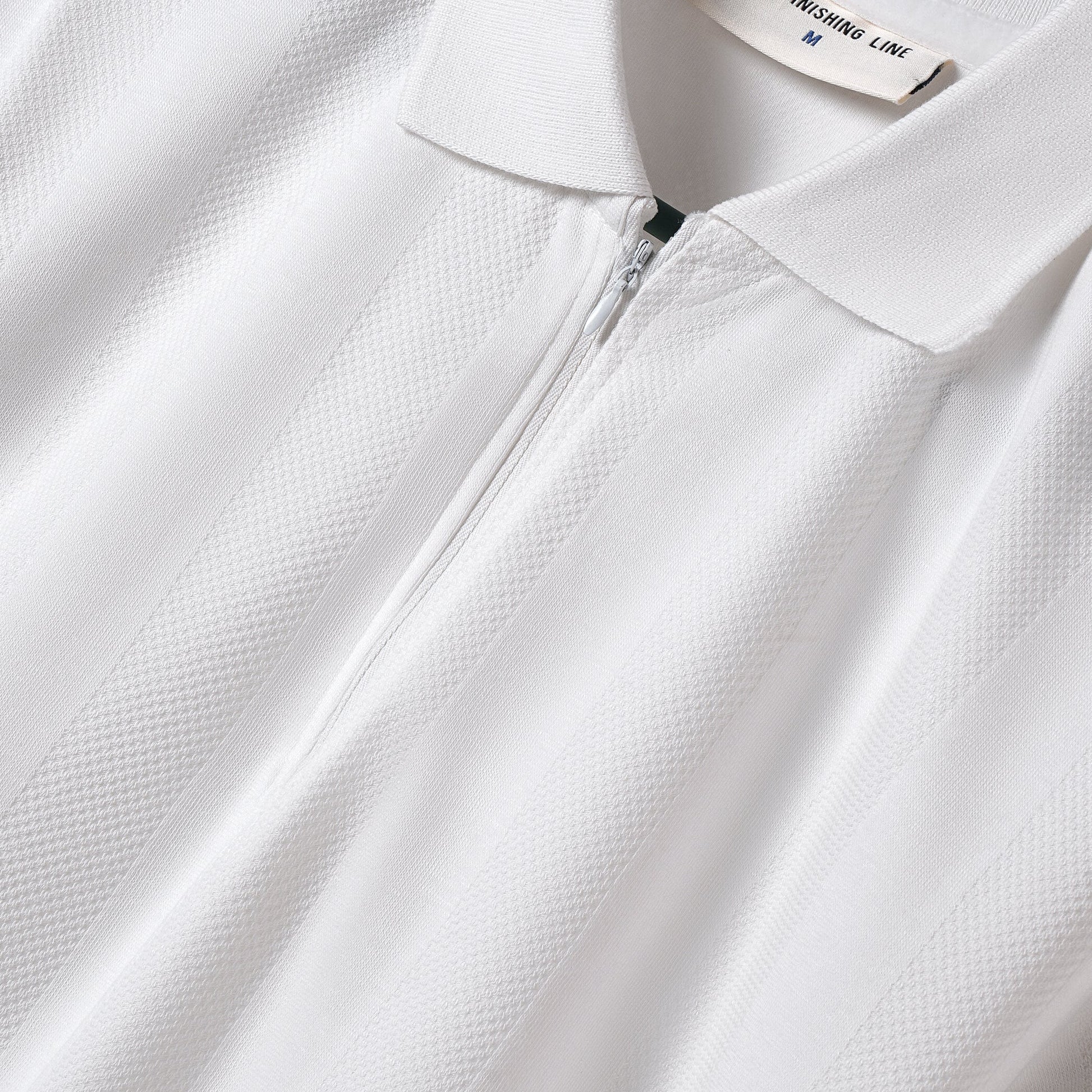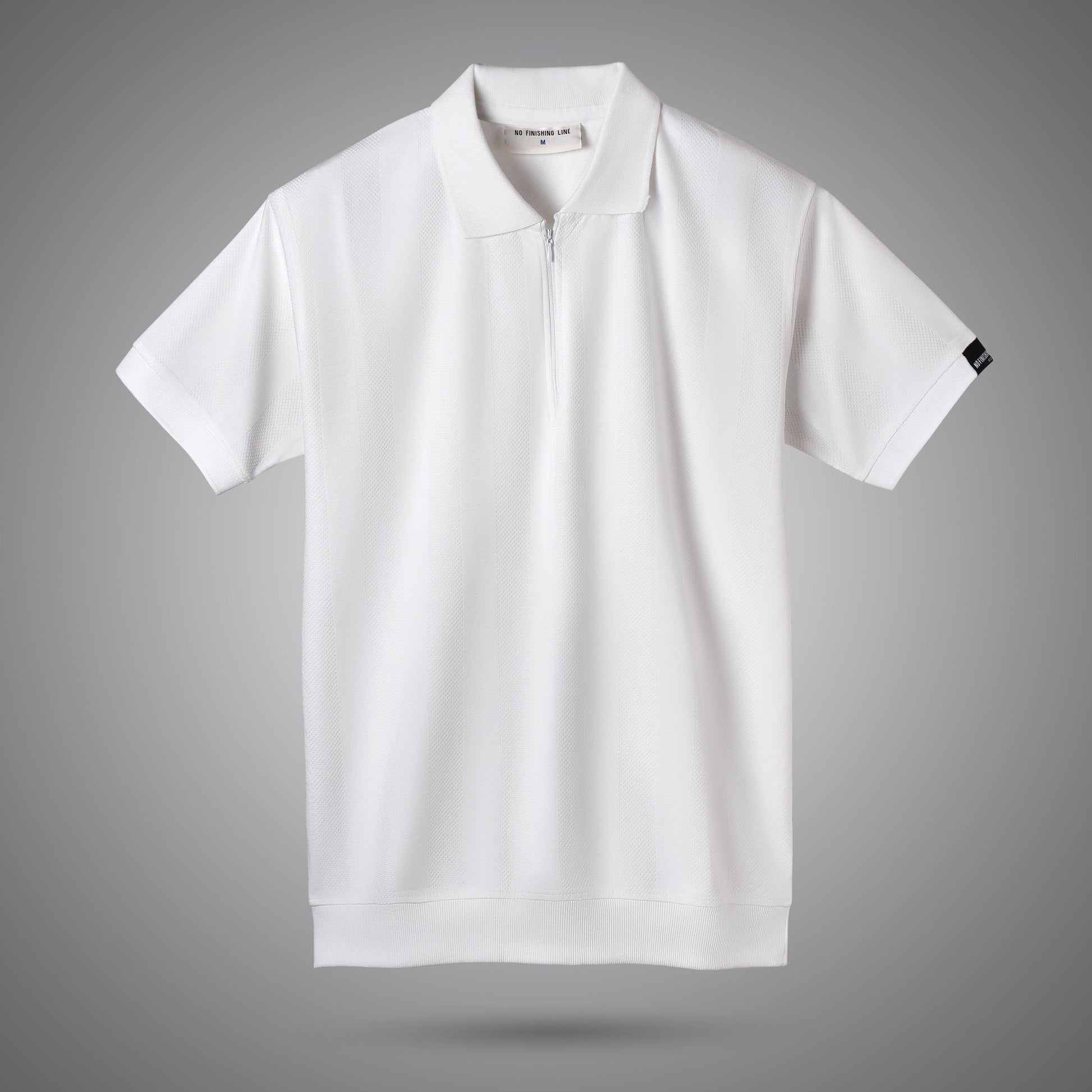White jacquard polo t-shirt that gives a retro look with a tapered hem and a slim fit.