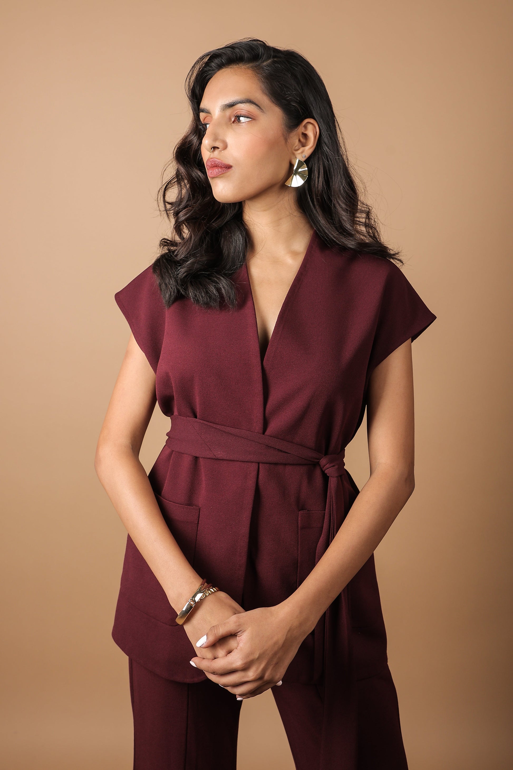 Wine Sleeveless Co-ord Set