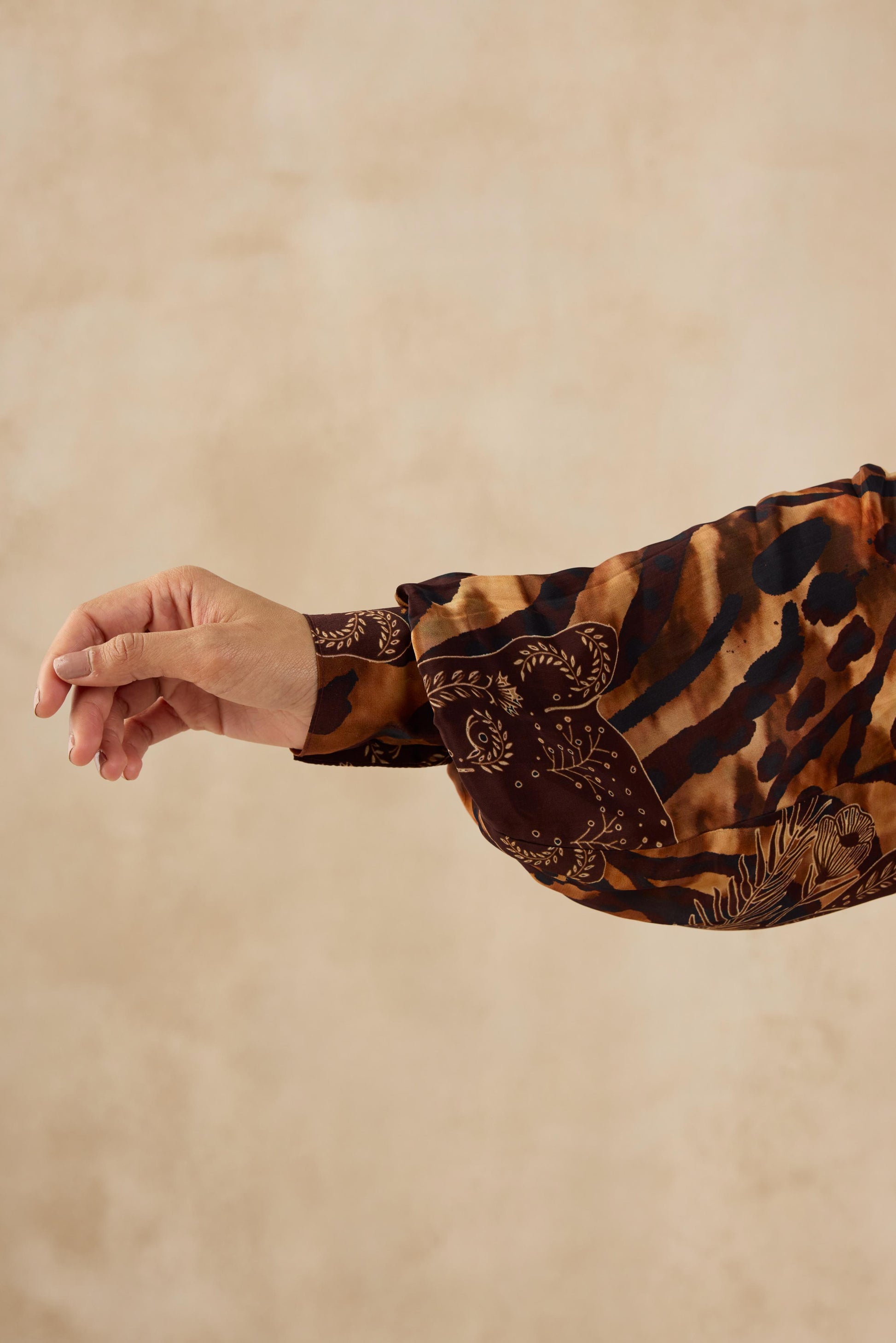 Step into power with the Brown Panther Co-ord Goals, our signature Panther & Sil Sila print co-ord set in a bold new brown colorway. Featuring an oversized shirt with a relaxed fit and matching wide-leg pants, this set is crafted from premium breathable fabric for all-day comfort. Perfect for effortless streetwear styling or an elevated casual look, Fabric: Crepe