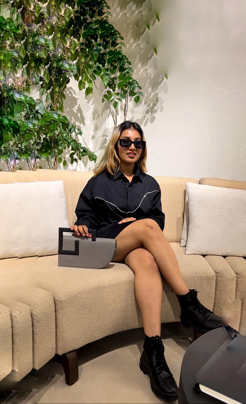 Black overshirt is made out of premium cotton fabric and has a delicate diamond handwork giving a shape of wave in the front.