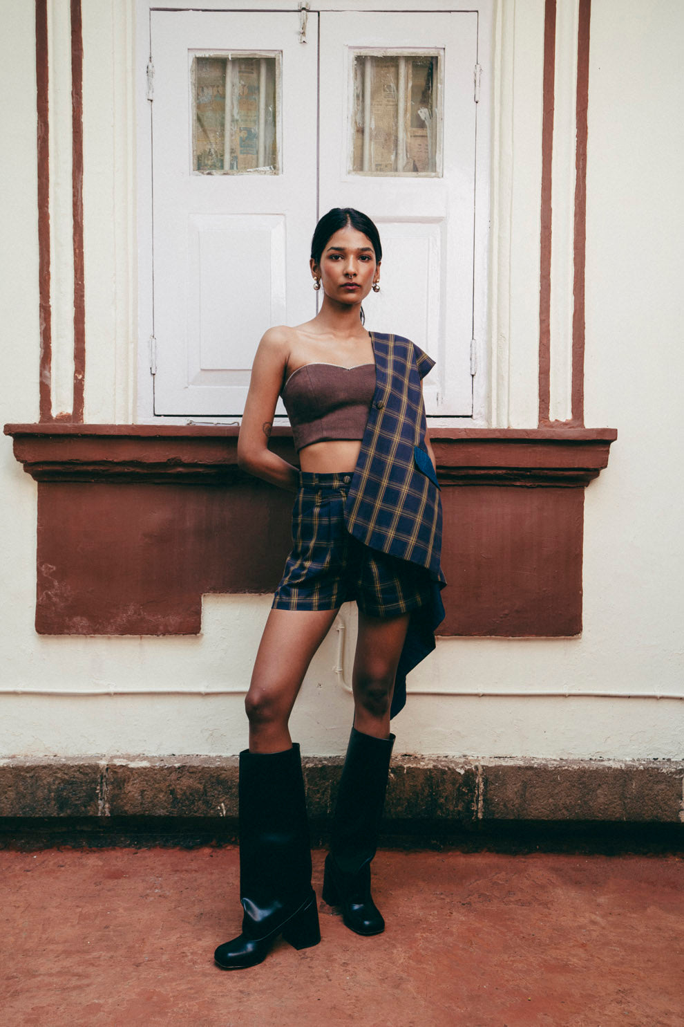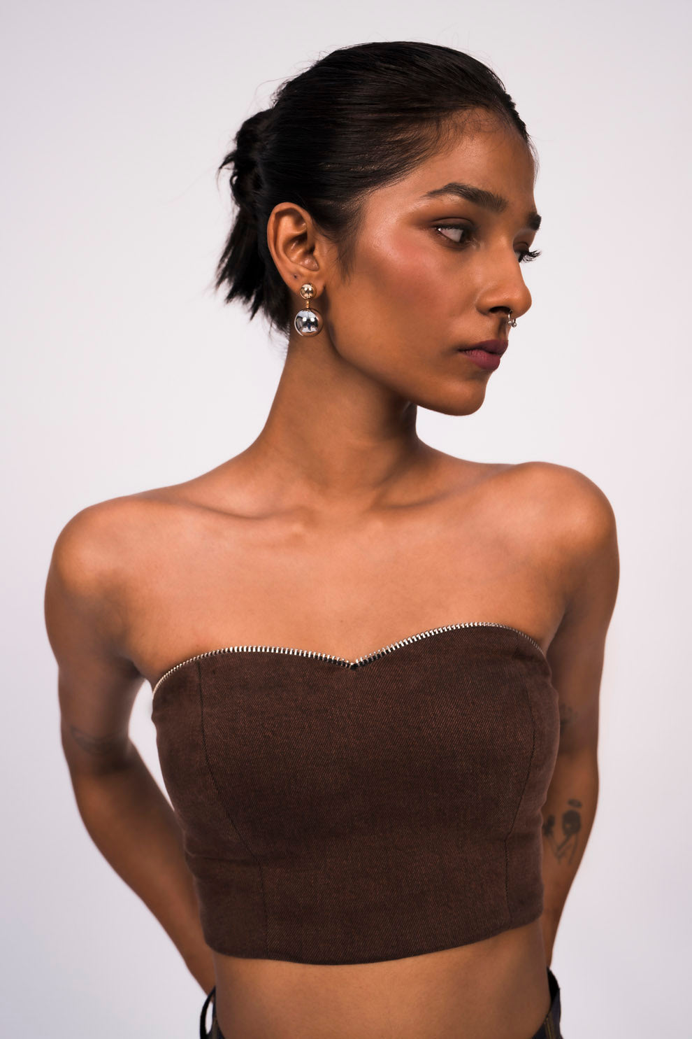 metal zip neckline - inside lining - back zipper closure - cropped length